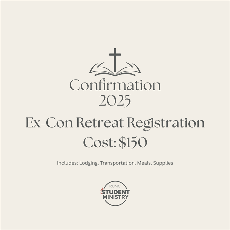 RUMC Home Page Toggle navigation Portal Menu Public Online Giving Event Calendar Mission Trip Giving Mission Trip Registration Private My User Account My Giving My Contribution Statement My Pledges My Mission Trips My Purchase History Online Directory Login Guest Show Summary (0) Event Details RSM Ex-Con Retreat Registration 2025 Back to Calendar This is the registration form for Ex-Cons who are going on the retreat. Your cost includes lodging, meals, and transportation. Cost: $150 Ministry Area: Student Activities When: Friday, October 3, 20255:00 PM - Sunday, October 5, 2025 12:00 PM Add To Calendar Where: Off-Site Meeting Instructions: Contact: Mayfield, Ben Registration Not Available